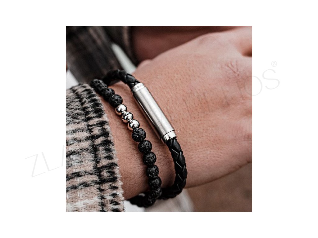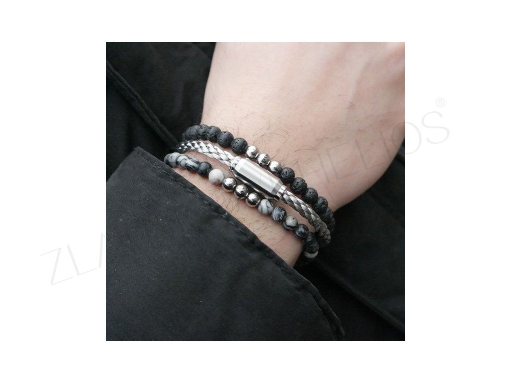 Náramok z lávových kameňov a chirurgickej oceleDĺžka 16-18cm MZdobený prírodnými kameňmi