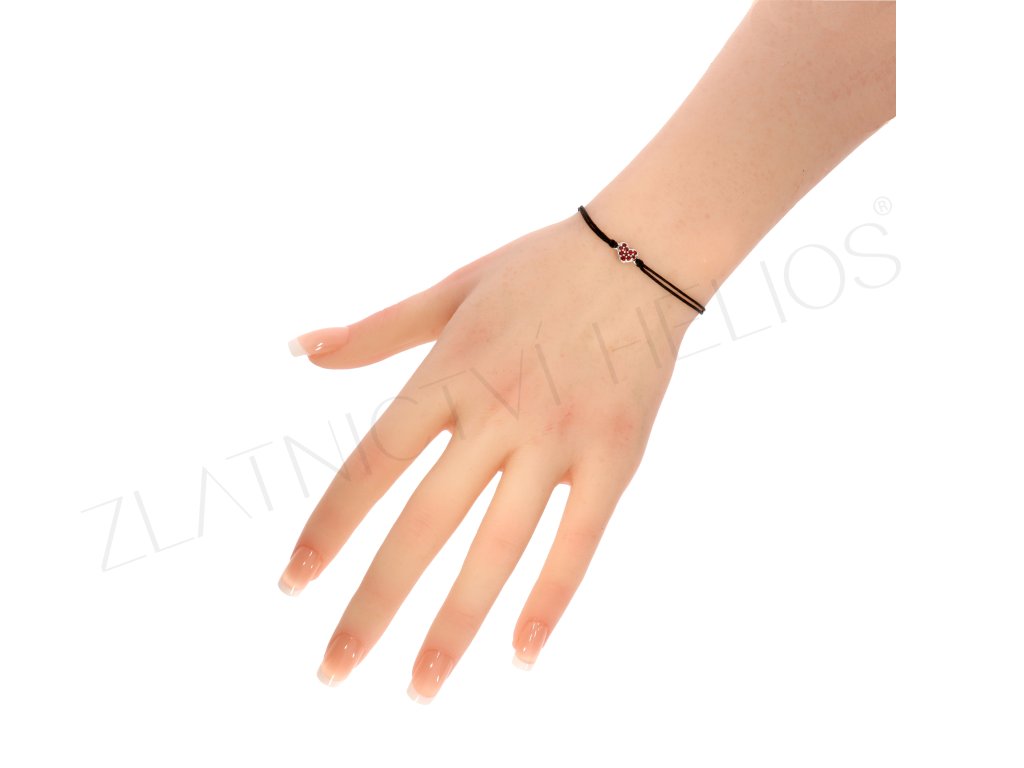 Šnúrkový náramok zdobený strieborným srdiečkom s Českými granátmi.