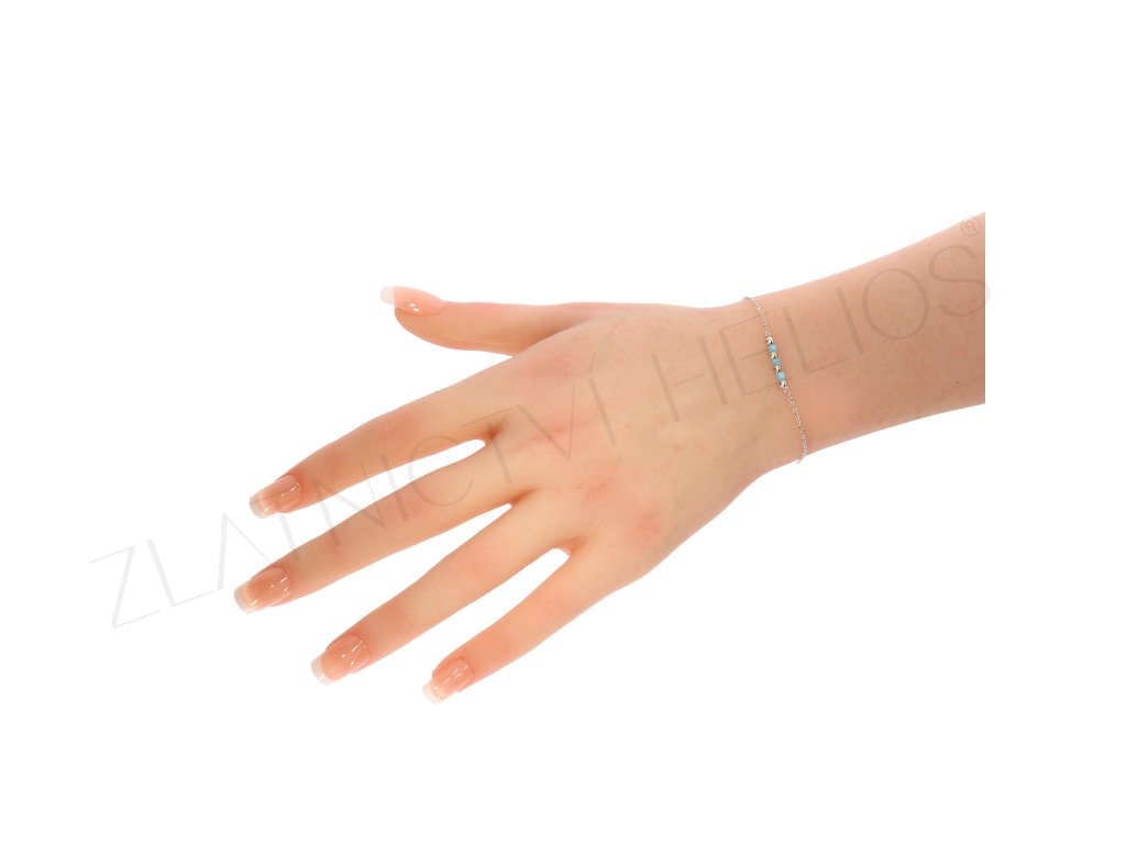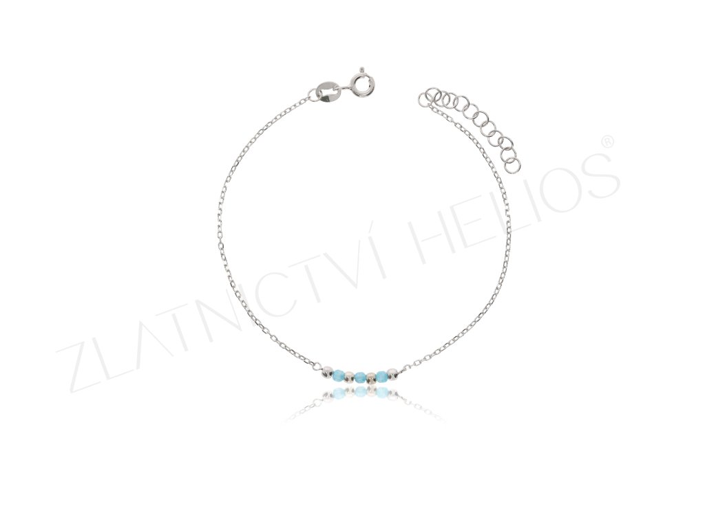 Strieborný náramok, ktorý je dozdobený modrými perličkami. Vhodný na decentný vzhľad.