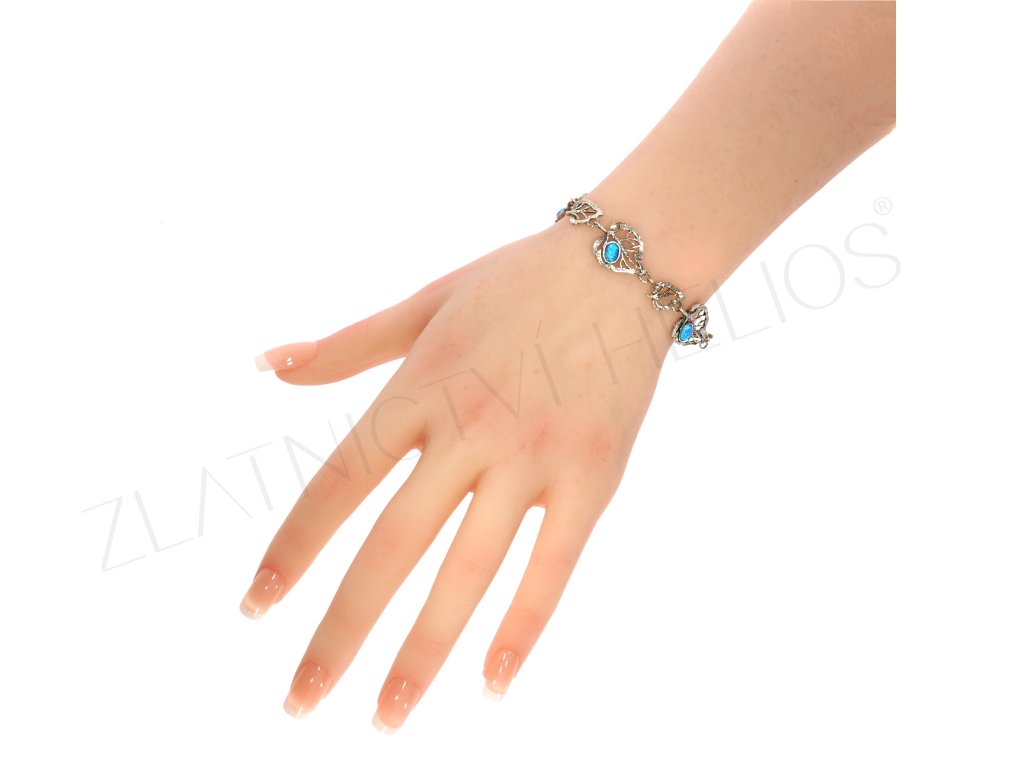 Strieborné listy , náramok zdobený modrými syntetickými opálmi. V našej ponuke nájdete aj prívesok a náušnice do súpravy. Táto jedinečná súprava je ideálna pre milovníčky výraznejších a netradičných šperkov. Limitovaná edícia.