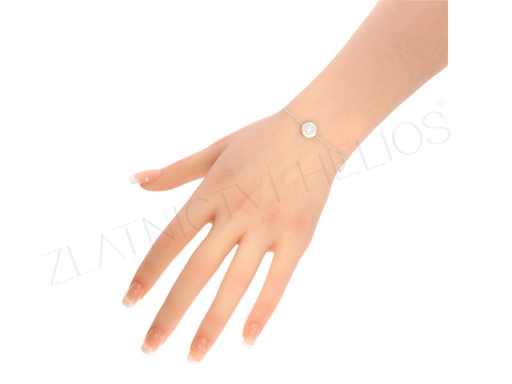 Strieborný náramok s písmenom O zdobeným zirkónmi.
