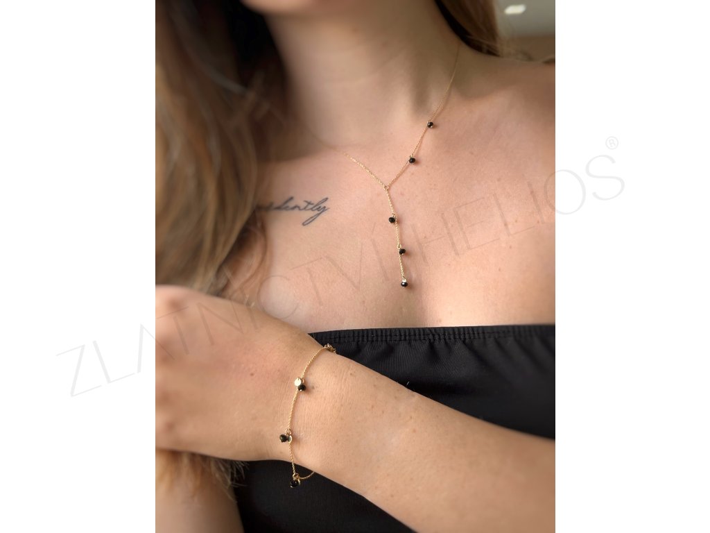 Zlatý náramok s onyxmi je možné vhodne doplniť aj náhrdelníkom.