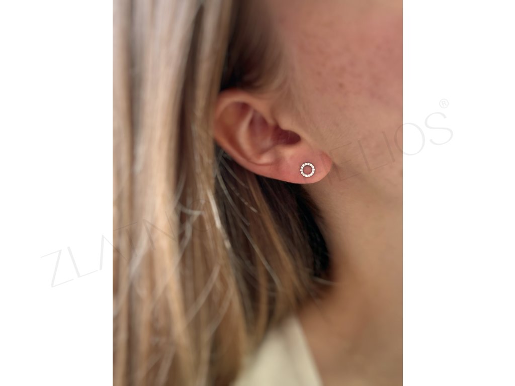 Zlaté náušnice so zirkónmi typ kôstky. Decentný model z bieleho zlata so zirkónmi.