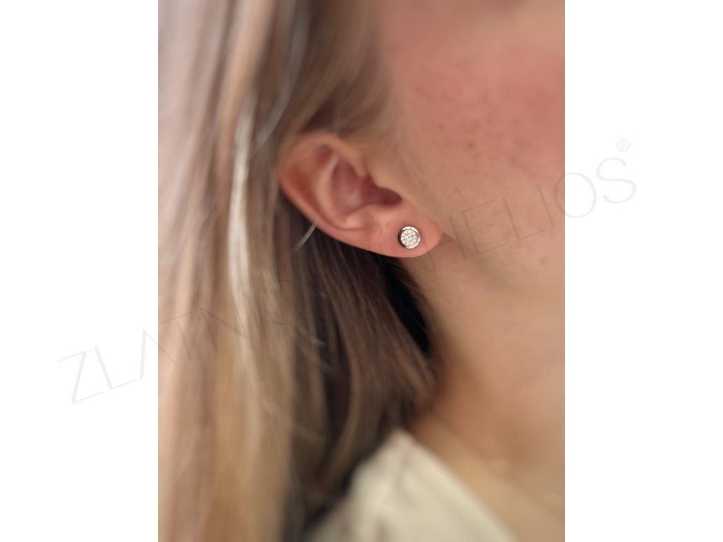 Náušnice z bieleho zlata kôstky zdobené jemnými zirkónmi, ktoré dodávajú náušniciam vysoký lesk.