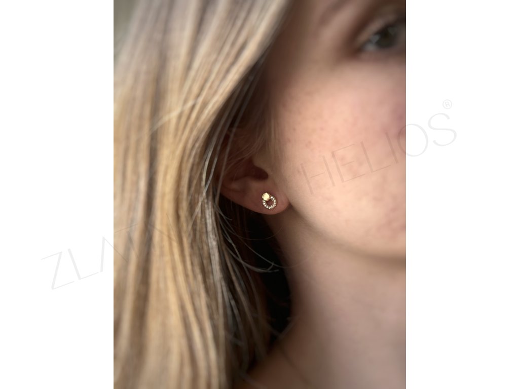 Jemné zlaté náušnice kôstky v tvare koliesok so zirkónmi