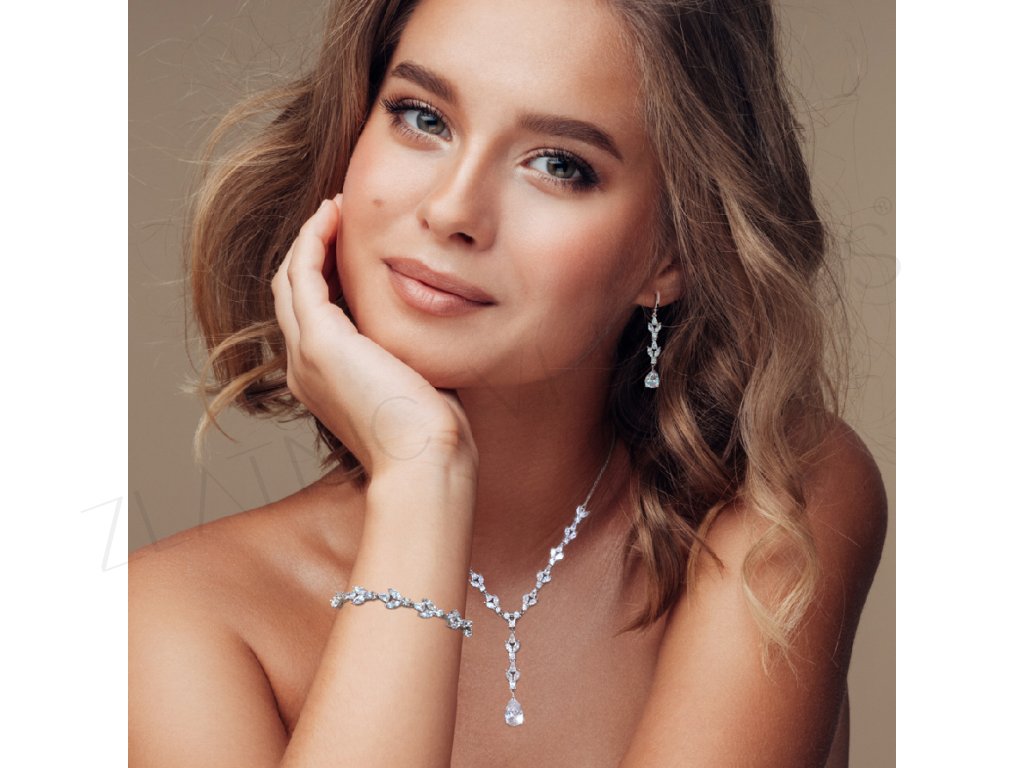 Spoločenské náušnice s výraznými, trblietavými zirkónmi. Dominantný šperk doplní decentný outfit, pristane nevestám, ženám vo večerných šatách...