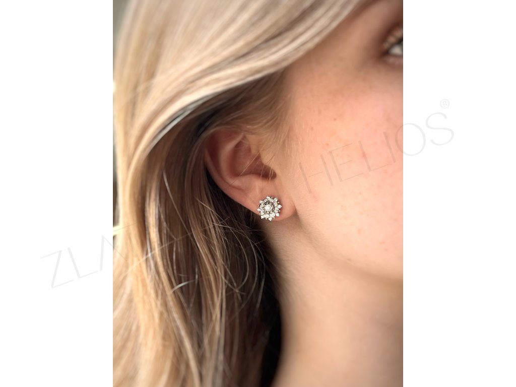 Žiarivé náušnice s diamantmi , kedy každý zo vzácnych kamienkov je do šperku vsadzovaný ručne pod mikroskopom. Tieto náušnice z bieleho zlata majú zapínanie na puzetu, ktoré je veľmi pevné a bezpečné.