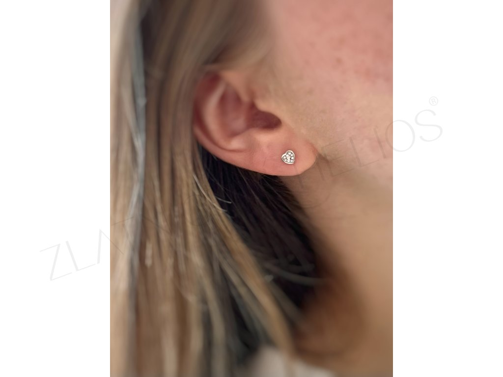 Náušnice z bieleho 14kt zlata v tvare srdiečka s obľúbeným zapínaním na skrutku. Svojím dizajnom sa hodí ako pre ženy tak aj pre dievčatá.