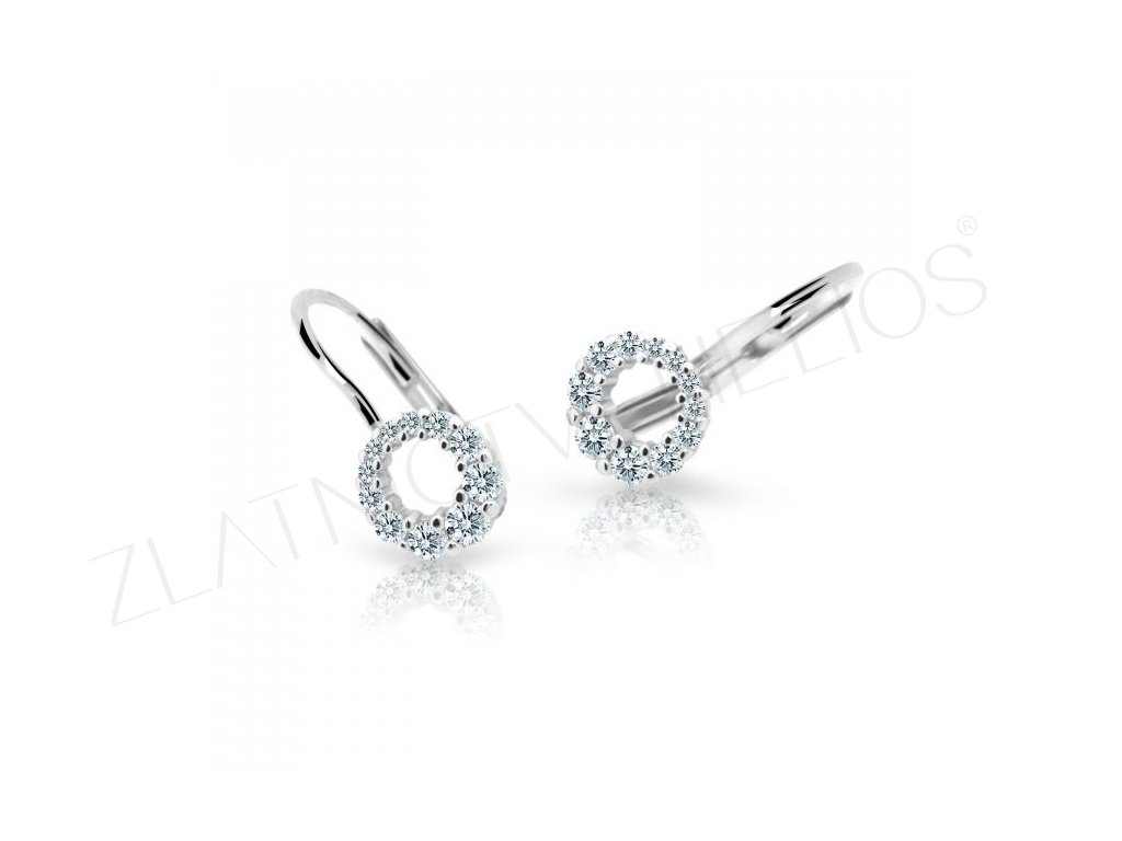Náušnice vyrobené zo 14kt bieleho zlata 585/1000Zapínanie patentové vhodné pre dievčatá od 5rokovZdobené bielymi zirkónmi Veľkosť 15,3x18,4mmMožno objednať rôzne farebné prevedenie zirkónovVáha 1,45g