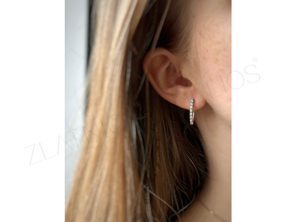 Zlaté náušnice kruhy sú doplnok každej elegantnej ženy. Zirkóny v čírej farbe rozžiaria náušnice a mierne pretiahnutý tvar do oválu týmto náušniciam dodá ešte luxusnejší štýl.