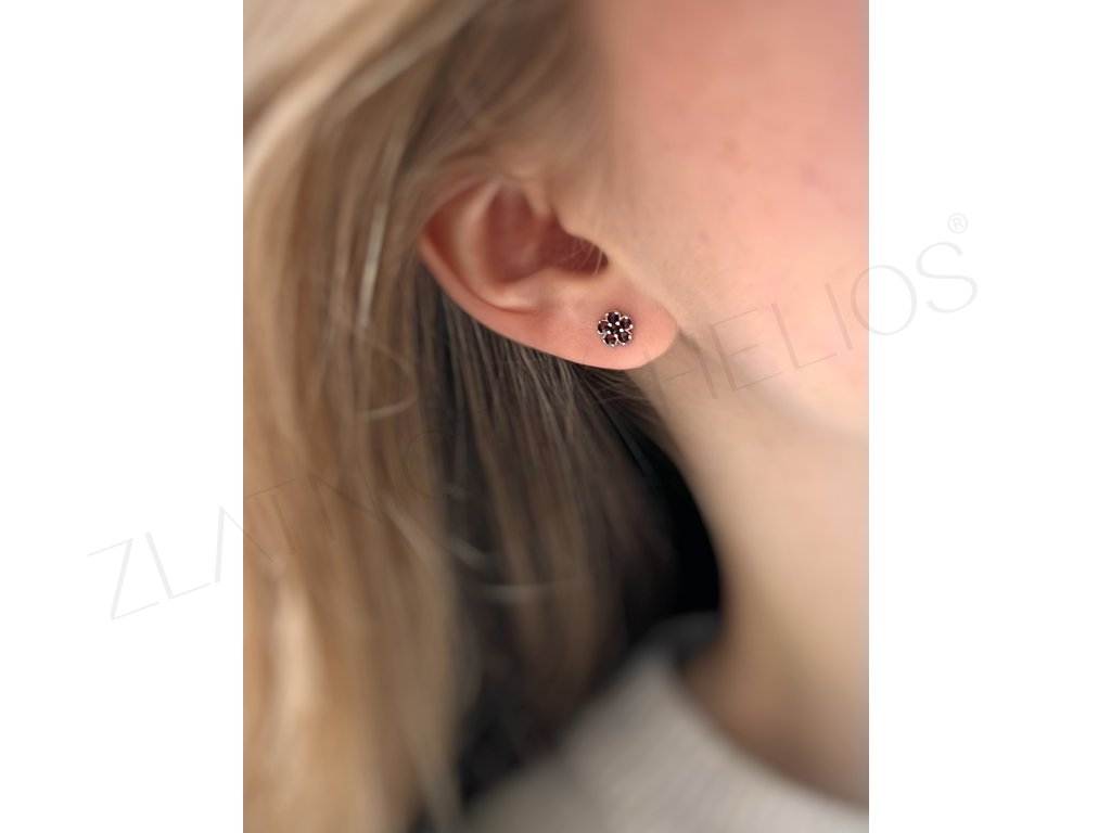 Strieborné náušnice na skrutku s českými granátmi