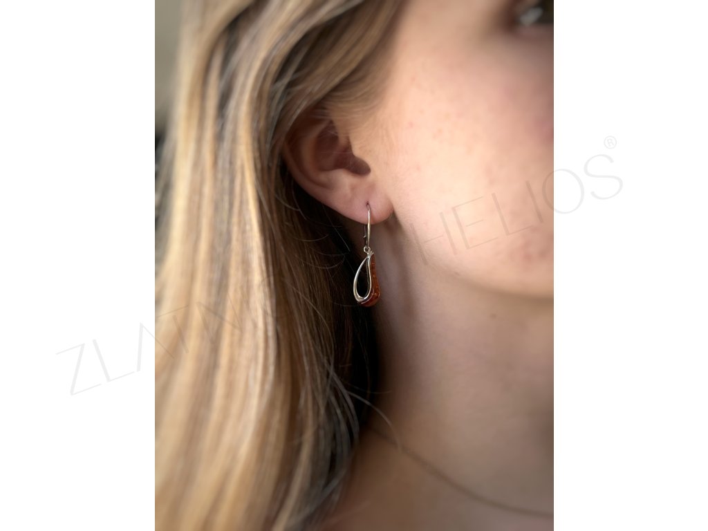 Visiace strieborné náušnice s prírodným jantárom. V našej ponuke nájdete aj prívesok a prsteň do súpravy.