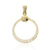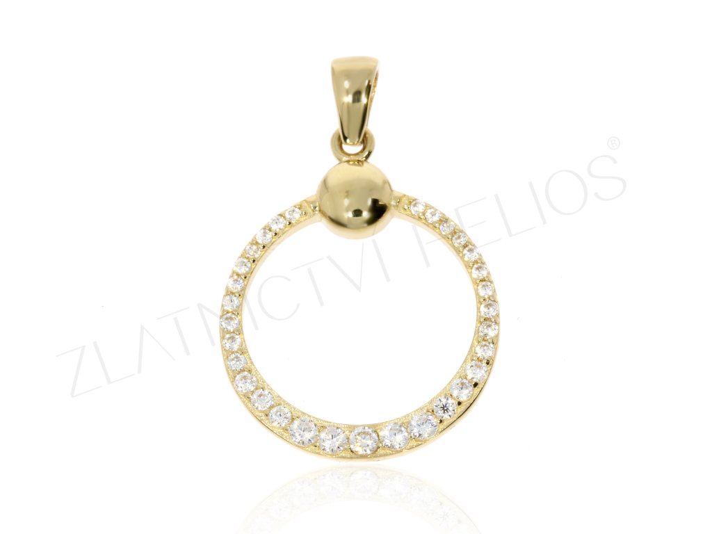 Súprava šperkov zo žltého zlata s obľúbeným motívom kruhu. Krúžky sú posádzané zirkónmi po celom obvode. Náušnice sú opatrené klasickým patentom, čo je pre manipuláciu veľmi pohodlné zapínanie.