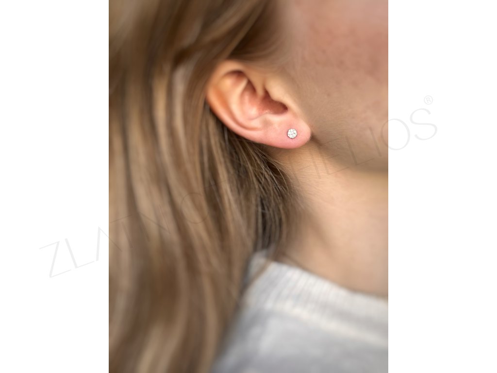Náušnice vyrobené zo 14kt bieleho zlata 585/1000Zdobené diamanty s briliantovým výbrusom-0,23ctZapínanie na puzety s istenímPriemer časti s diamantmi 5mmVáha 1,48gPrívesok do setu v cene 15 939,-/