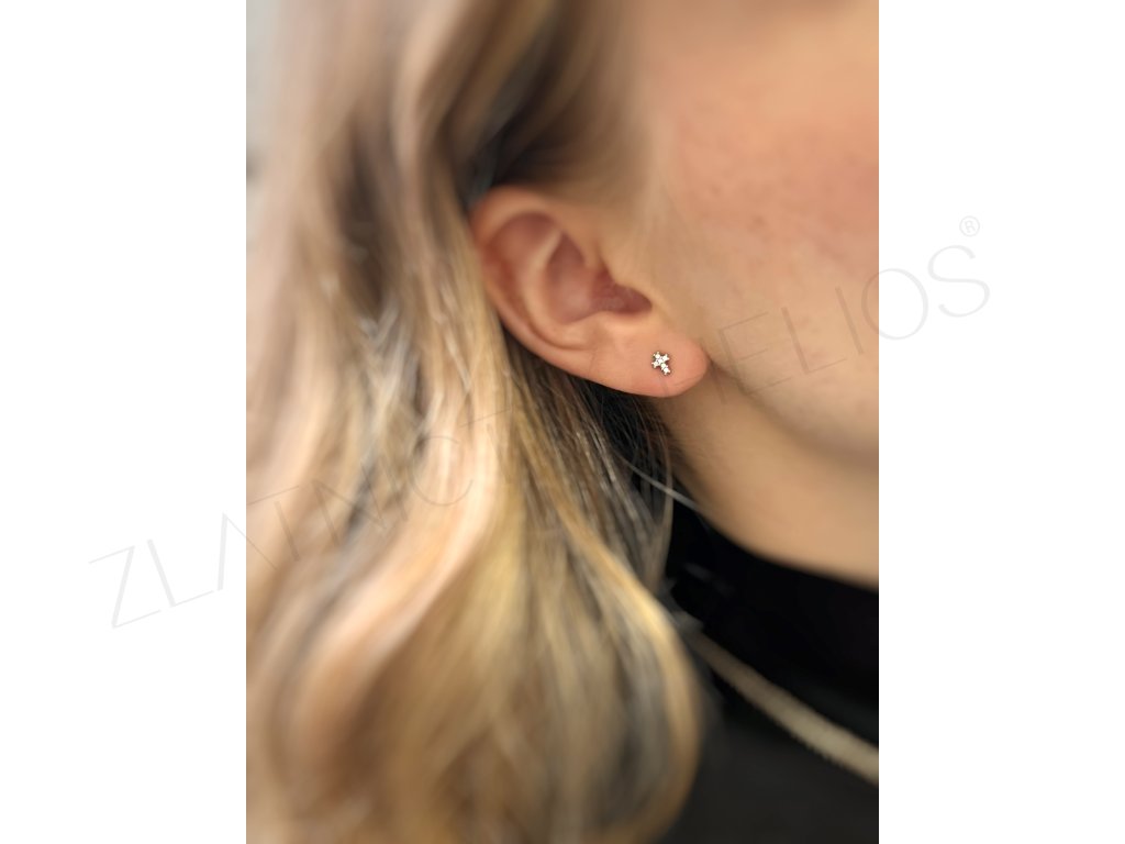 Náušnice z bieleho zlata vzor kríž nežne zdobené zirkónmi.