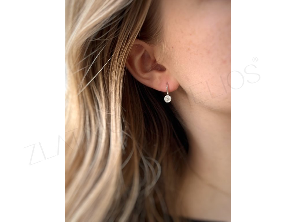 Biele zlato v kombinácii s výraznými, trblietavými zirkónmi sú neprehliadnuteľné. Tento zlatý šperk upúta na prvý pohľad. Zapínanie na klasický patent je pohodlné. Ženy a dievčatá, ktoré rady nosia efektné a nie príliš veľké šperky určite ocenia ich lesk a ligot.