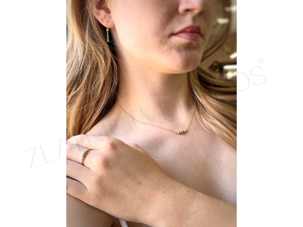 Jemné zlaté náušnice s prírodnými kameňmi - smaragdy a diamanty.