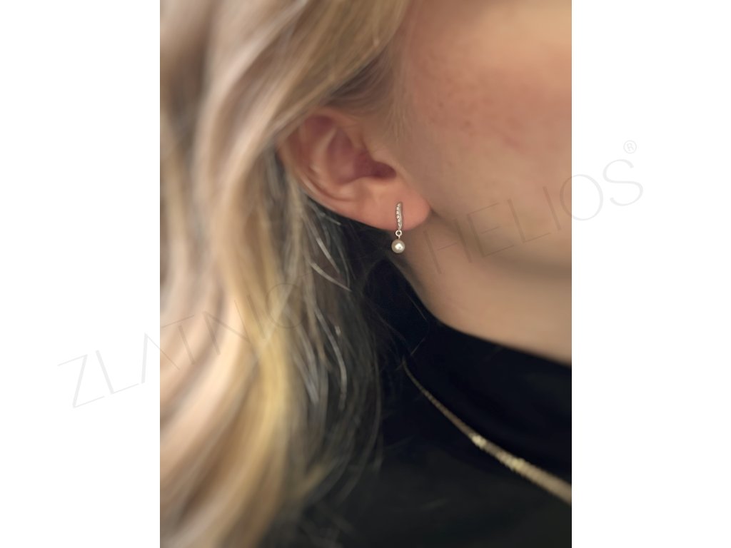 Nežné náušnice z bieleho zlata s dôrazom na detail. Krásna perlička sa zhoupne pri každom vašom kroku.