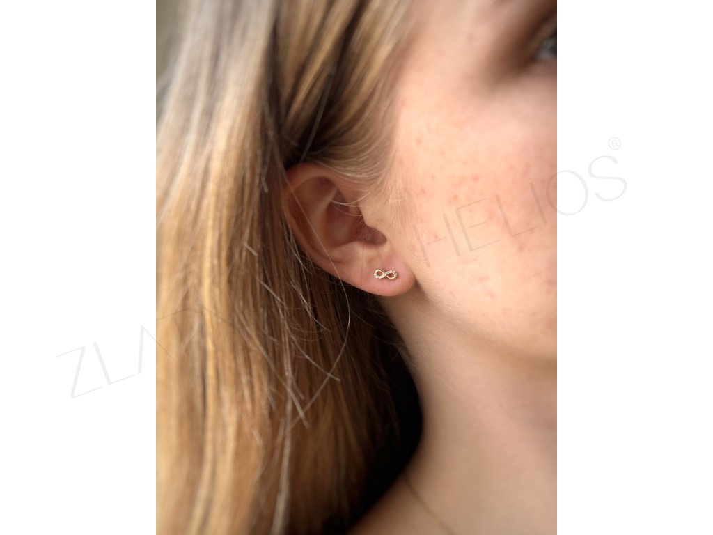 Jemné náušnice s nekonečnom zo žltého zlata. Nekonečno je veľmi obľúbený symbol.