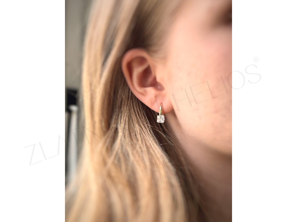 Klasický patent je stále veľmi obľúbené zapínanie, ktoré sa dá doplniť o poistky. Zlaté náušnice a nadčasový vzor. Výrazný štvorcový zirkón s výbrusom.