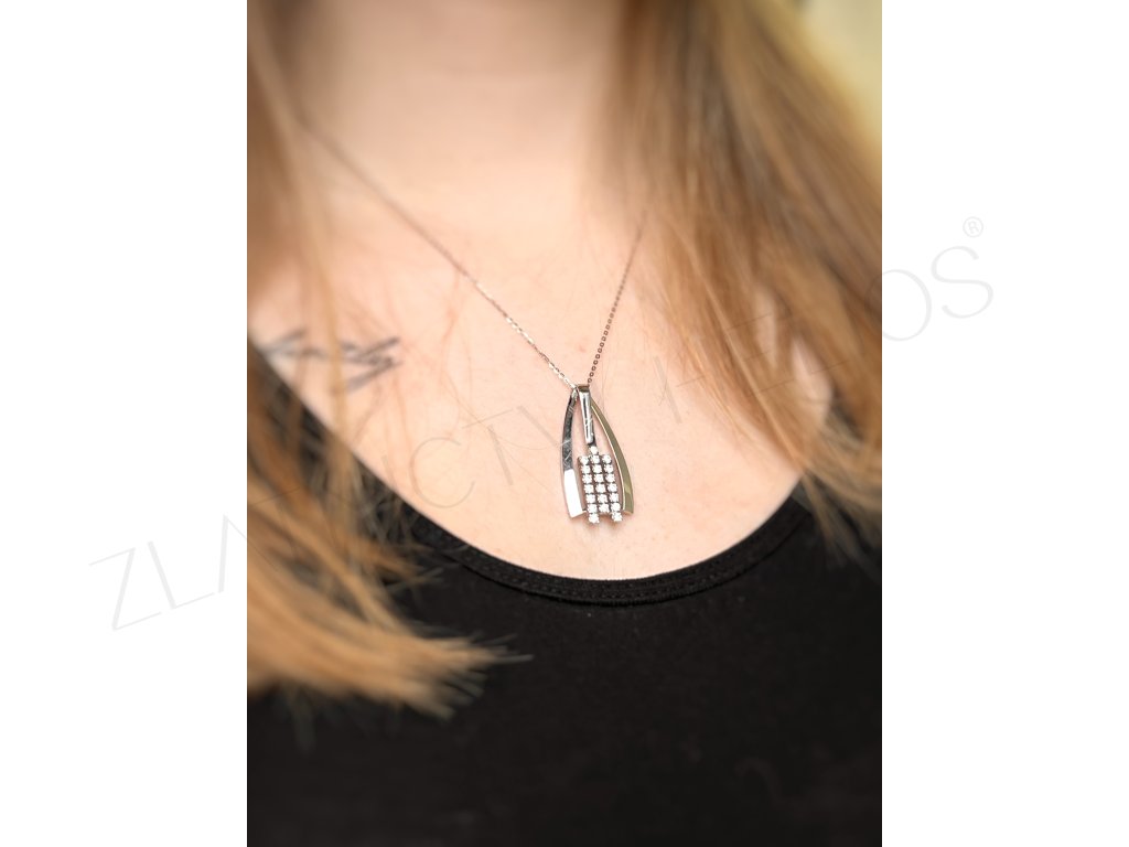 Prívesok vyrobený zo 14 kt bieleho zlata 585/1000Zdobený zirkónmi Veľkosť 3,7x 1,7cmVáha prívesku 4,65g