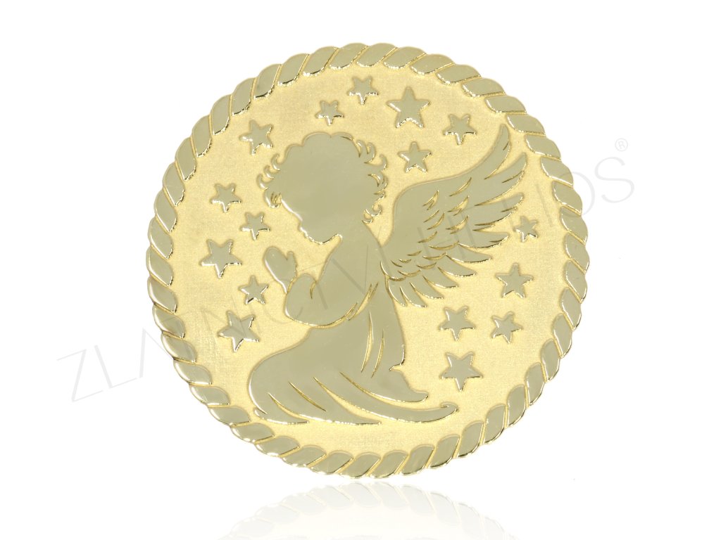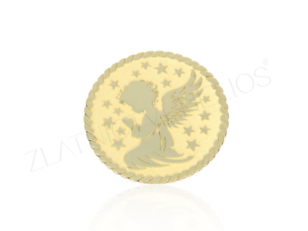 Pamätné mince zo žltého zlata s anjelikom. Darček ku krstu , narodenie dieťaťa ... vyrobené v našej zlatníckej dielni. Na prianie je možné doplniť o rytinu na zadnú stranu, vyrobiť možno aj v iných veľkostiach, alebo opatriť pútkom na zavesenie na retiazku. Anjelik je symbolom ochrany, lásky a viery.