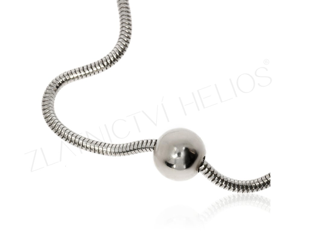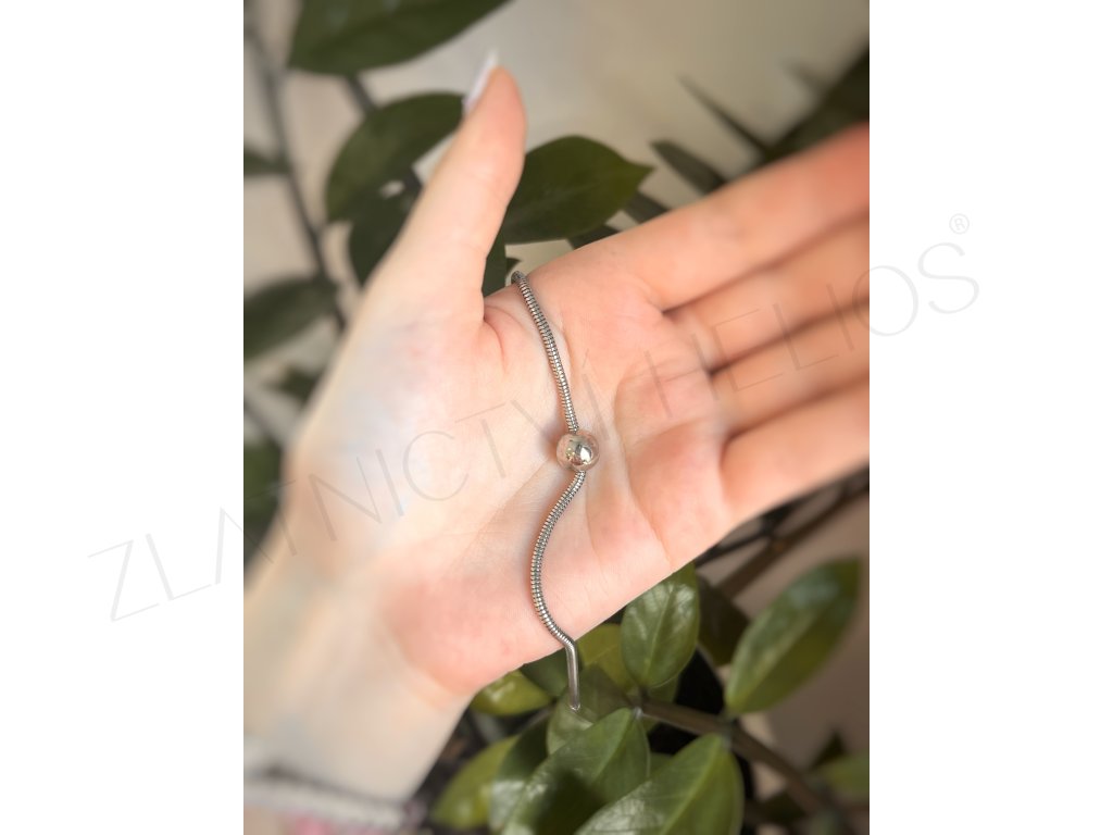 Strieborná gulička vhodná na náramok typu lanko s maximálnym priemerom 2,4mm. Možno ozdobiť aj retiazku. Náramok z našej fotografie dĺžka 21cm kód B-47382