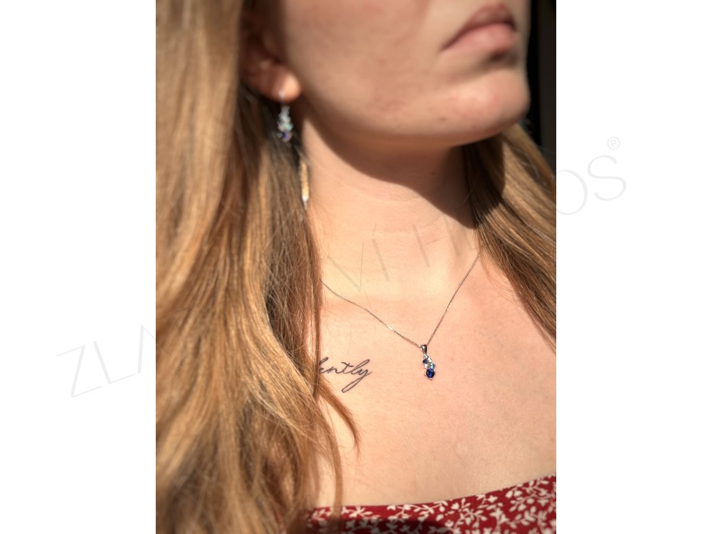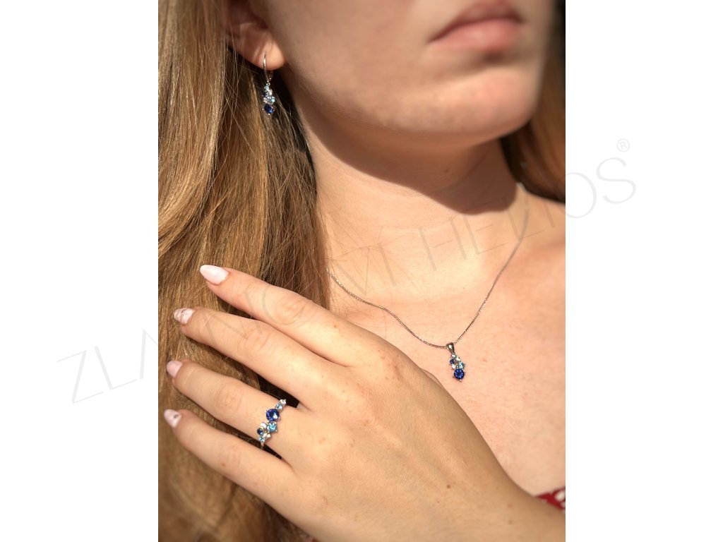 Prívesok z bieleho zlata zdobený modrými zirkónmi. Prsteň a náušnice do súpravy nájdete na našom e-shope.