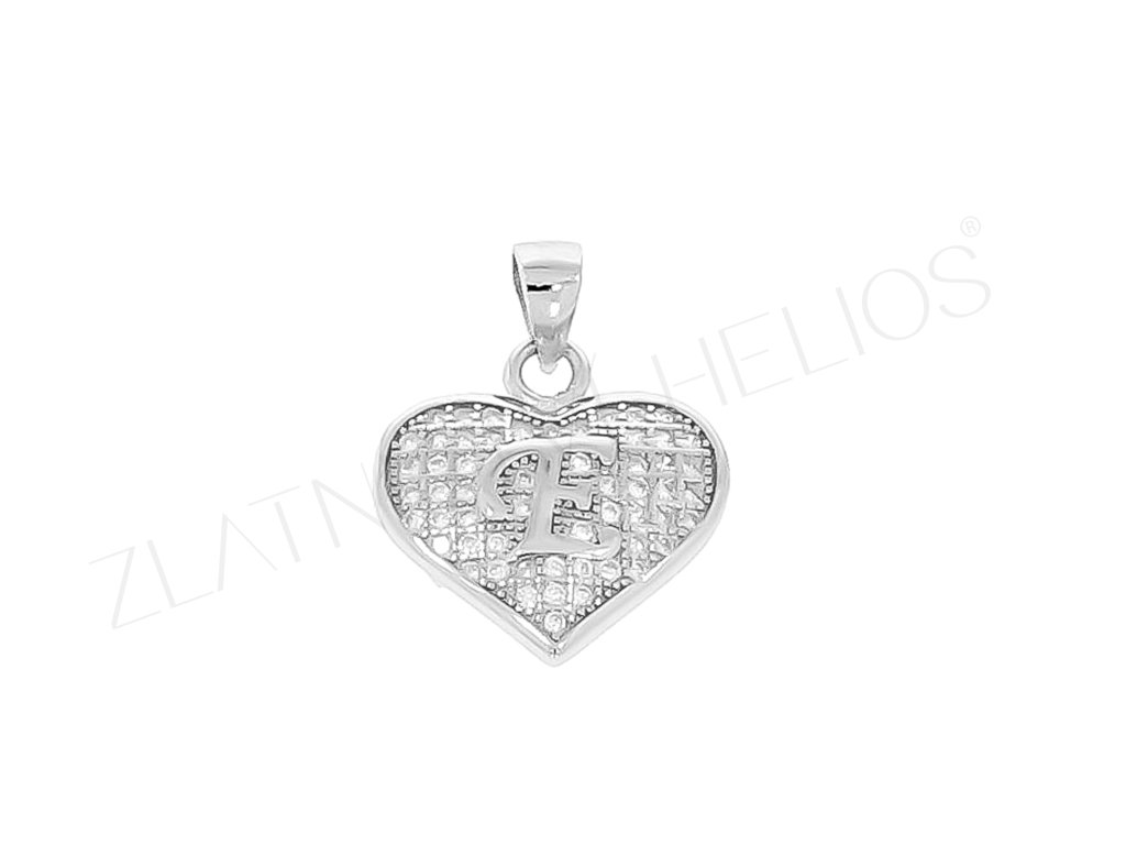 Strieborný prívesok v tvare srdca. V strede je ozdobné písmeno E. Vhodný pre ženy , dievčatá.