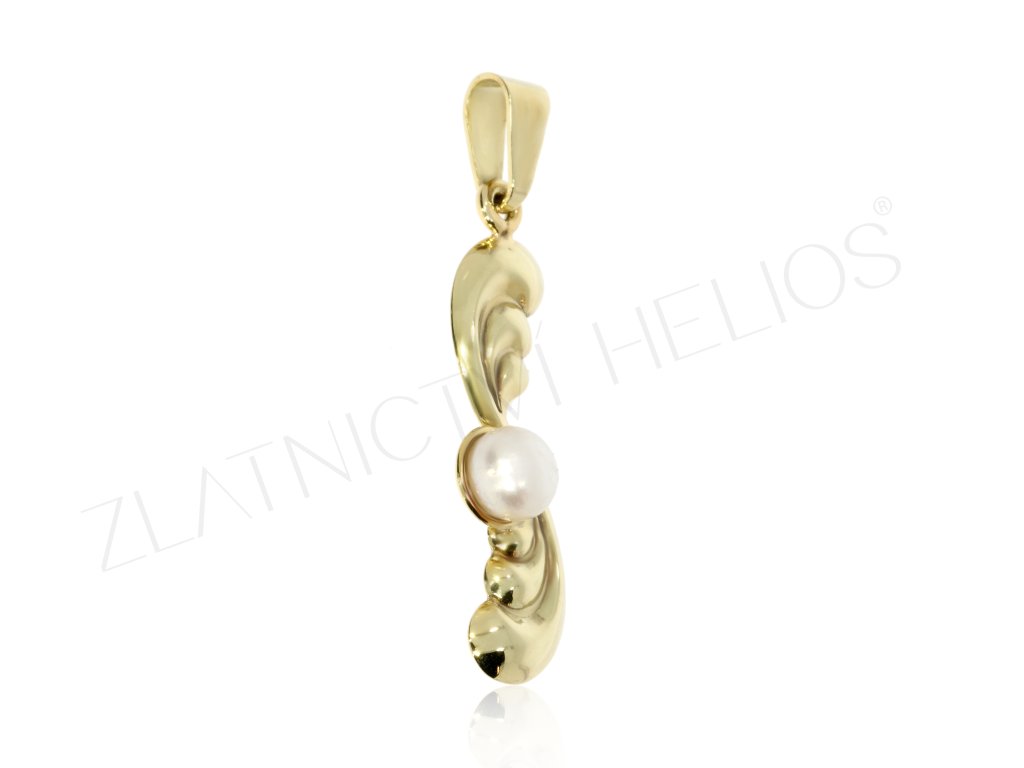 Prívesok zo žltého zlata zdobený jednou pravou riečnou perlou.