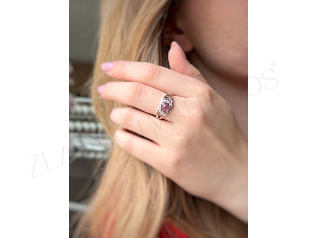 Prsteň vyrobený zo striebra 925/1000Zdobený Ametystom a zirkónmiRhodiované striebroVeľkosť prsteňa č.58Váha 4,2g