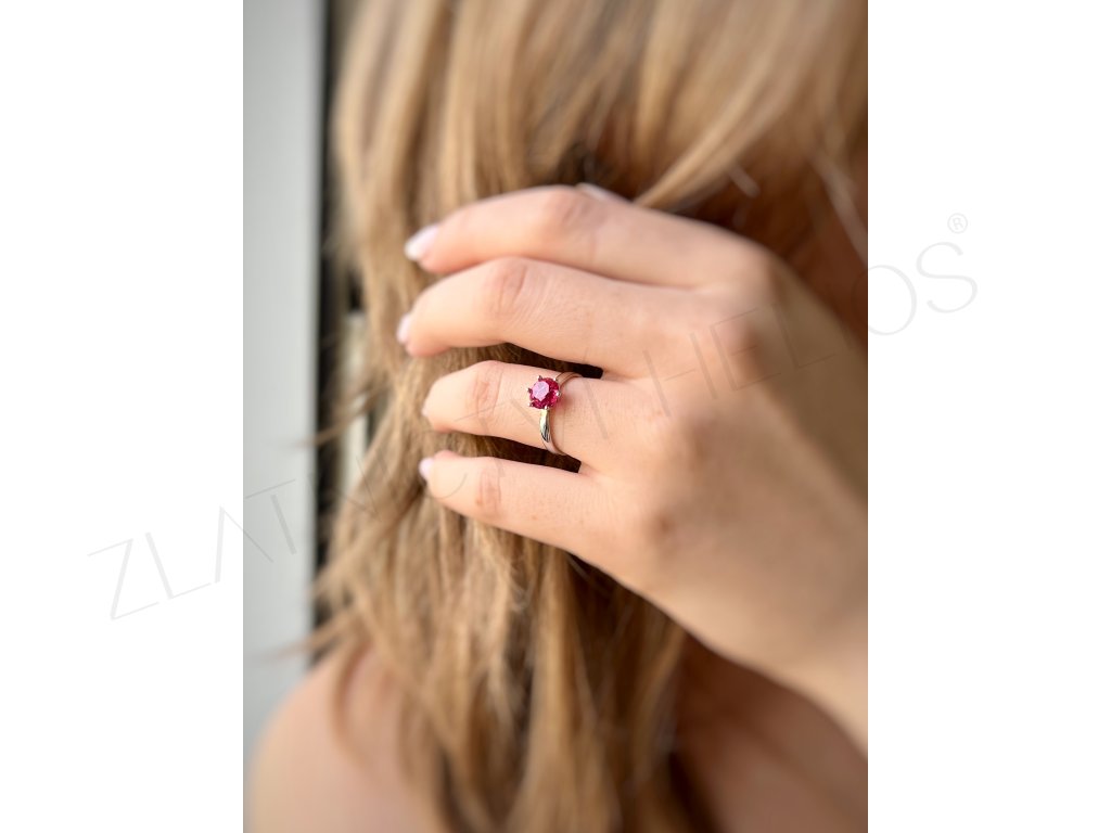 Dámsky prsteň z bieleho zlata so zirkónom tmavo ružovej farby