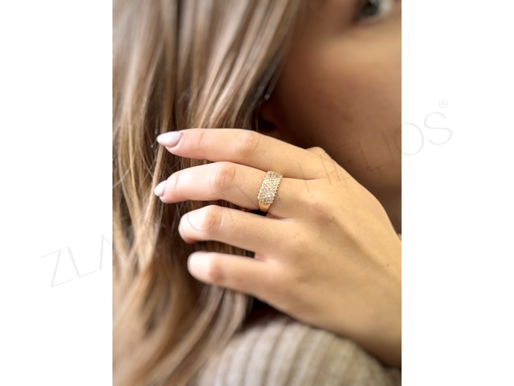 prsteň zo žltého zlata posádzaný zirkónmi