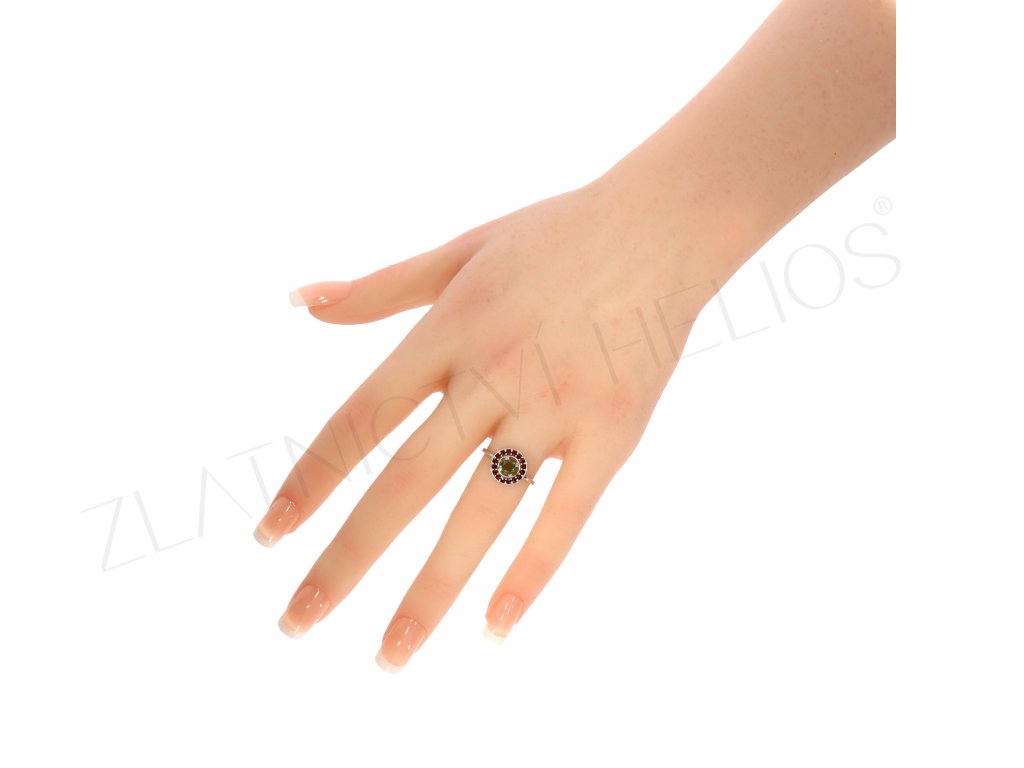 Vltavín patrí do skupiny tektitov, čo sú prírodné kremičité sklá, podľa uznávanej teórie vznikli dopadom asteroidu a sú im prisudzované magické účinky. Prvýkrát boli v Čechách nájdené pre 250 rokmi. Český granát v kombinácii s Vltavínom tvorí zaujímavú farebnú kompozíciu. Strieborný prsteň s českými granátmi a vltavínom.