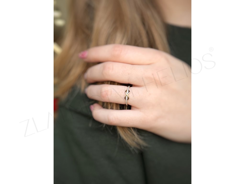 Zlatý prsteň nekonečno s trblietavými zirkónmi.