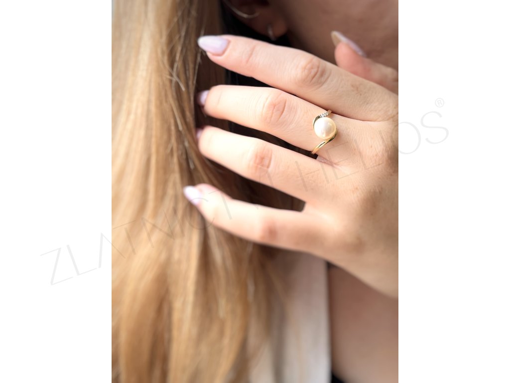 Prsteň zo žltého zlata s riečnou perlou a briliantmi