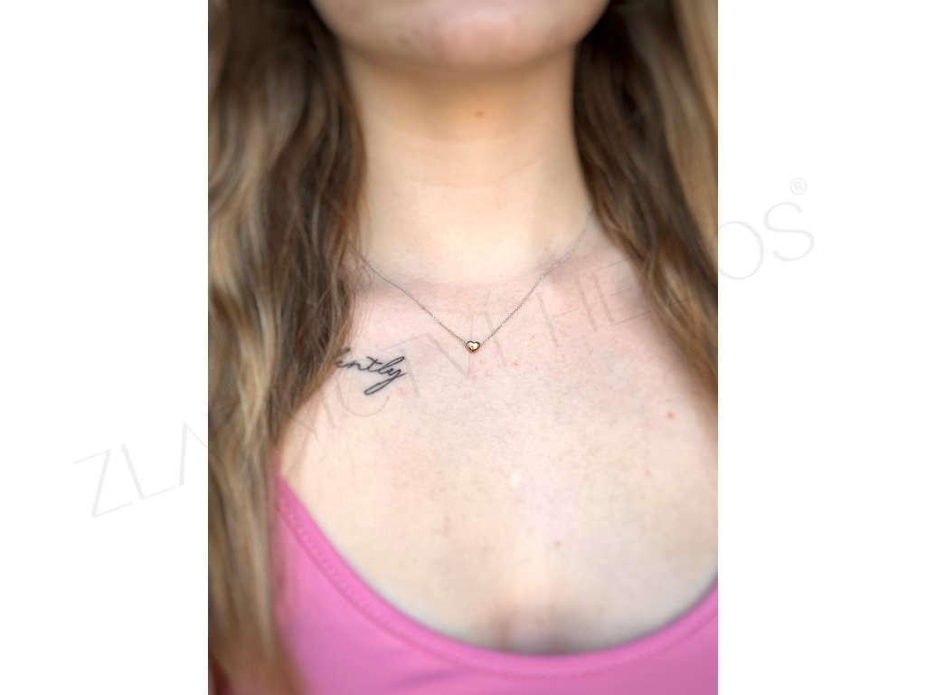 Jemný, nežný náhrdelník z bieleho a ružového zlata. Na decentnej bielej retiazke je vložené maličké ružové srdiečko.