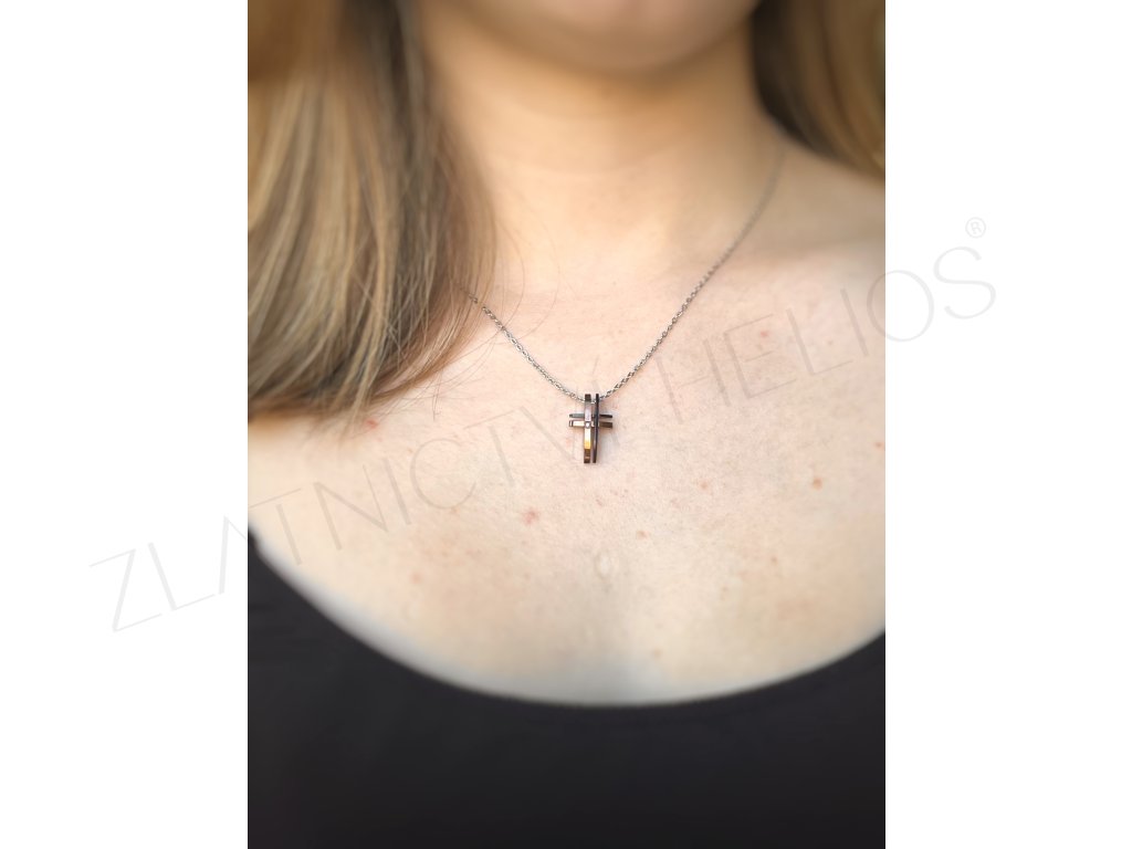 Retiazka z chirurgickej ocele zdobená krížikom v 3D plastickom prevedení so zaujímavou kombináciou farieb.