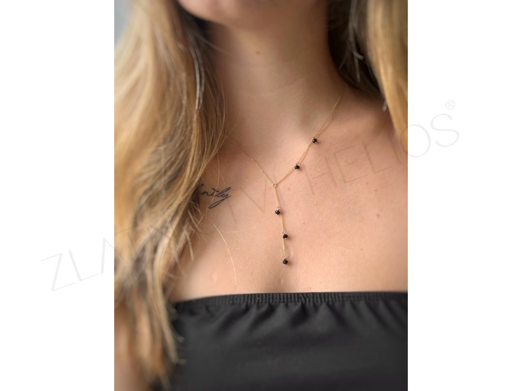 Náhrdelník zo zlata , ktorý vďaka zaujímavému tvaru a čiernym onyxom nikto neprehliadne.