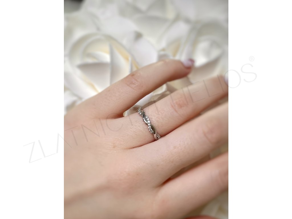 - Dámsky prsteň zdobený zirkónmi, prírodnými diamantmi, alebo laboratórne vytvorenými diamantmi