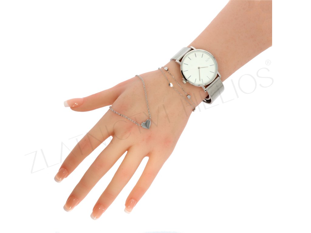 Hodinky si na zápästie pripnete dokonale prispôsobivým milánskym ťahom z ušľachtilej ocele , ktorý nadväzuje na oceľové puzdro. Minimalistický ciferník bielej farby zdobia iba ručičky s jednoduchými indexmi, vďaka čomu je skvele čitateľný. Darčekový set hodiniek, náhrdelníka a náramku značky A-NIS je perfektným darčekom na Vianoce alebo narodeniny , Ktorý vykúzli úsmev na tvári každej ženy alebo dievčatá.