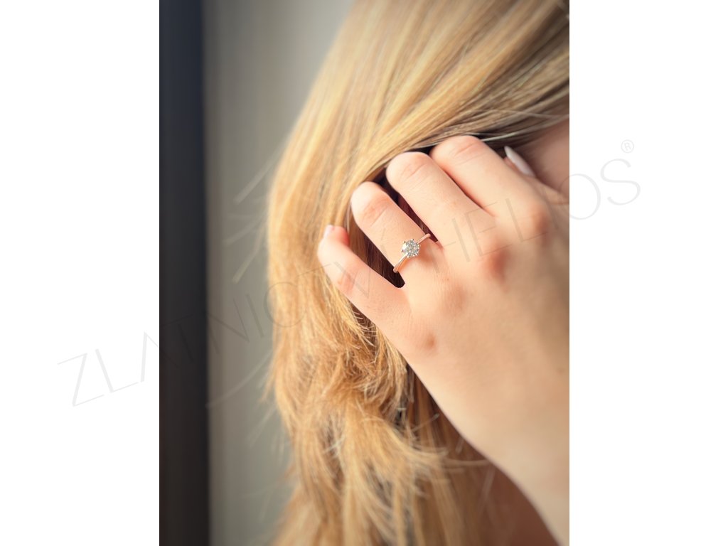 Luxusný zásnubný prsteň vyrobený z bieleho 14k zlata . Diamant briliantového brusu je uchytený pomocou šiestich krapien a oplýva vysokým leskom. Čistý a nadčasový dizajn, ktorý sa skvele hodí pre žiadosť o ruku , alebo môže byť úchvatným zberateľským kúskom aj cennou investíciou.