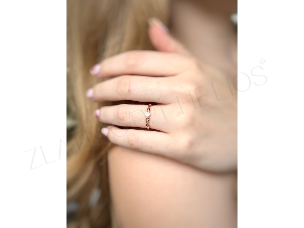 Jemný prsteň z ružového zlata s diamantmi a symbolmi nekonečna.