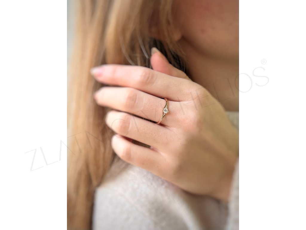 Decentný, pritom však výrazný prsteň z ružového zlata s mimoriadnym uchytením iskrivého briliantu. Rose gold variant