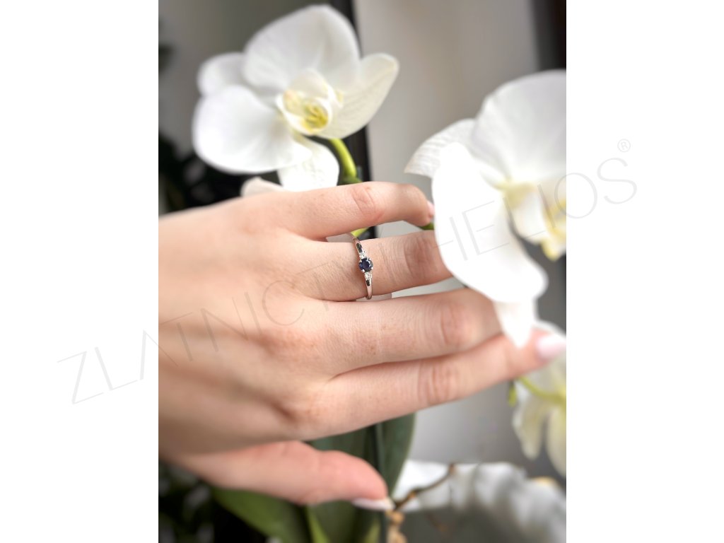Prsteň z bieleho zlata so Zafírom a Diamanty