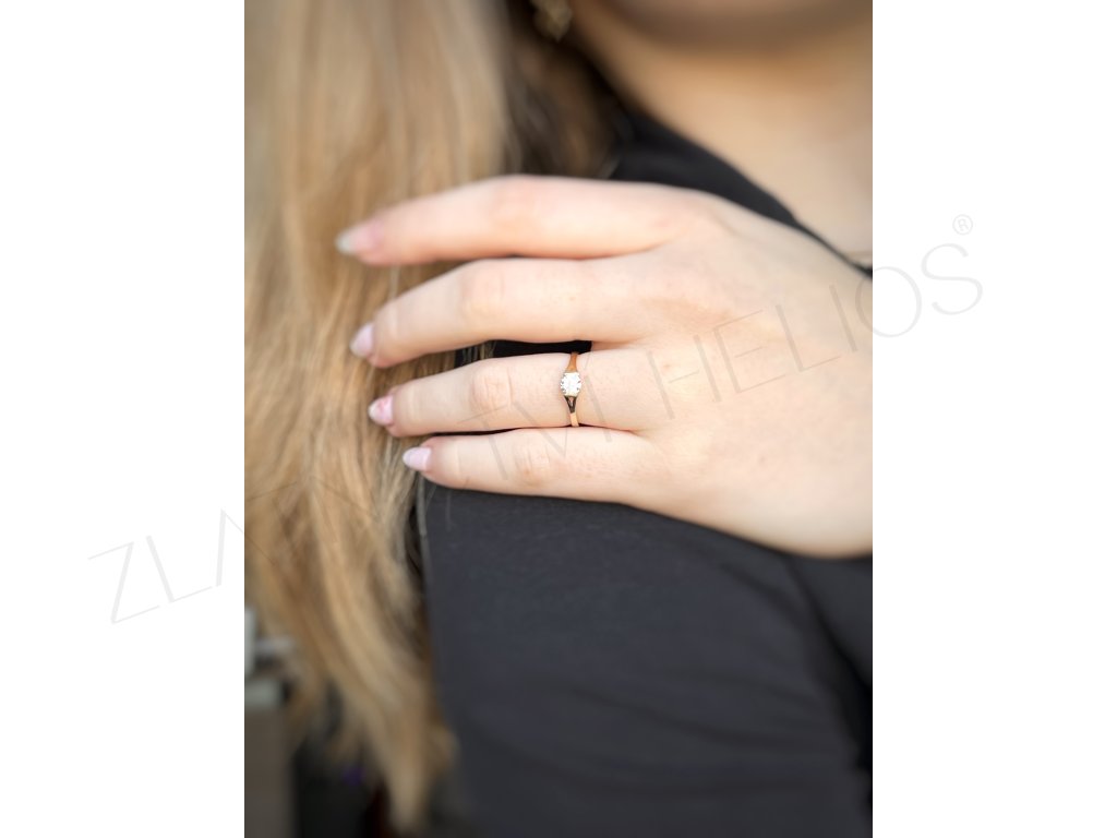 Zlatý prsteň v minimalistickom štýle. Zdobený zirkónom, ktorý je jeho dominantným prvkom. Vhodný ako zásnubný prsteň .