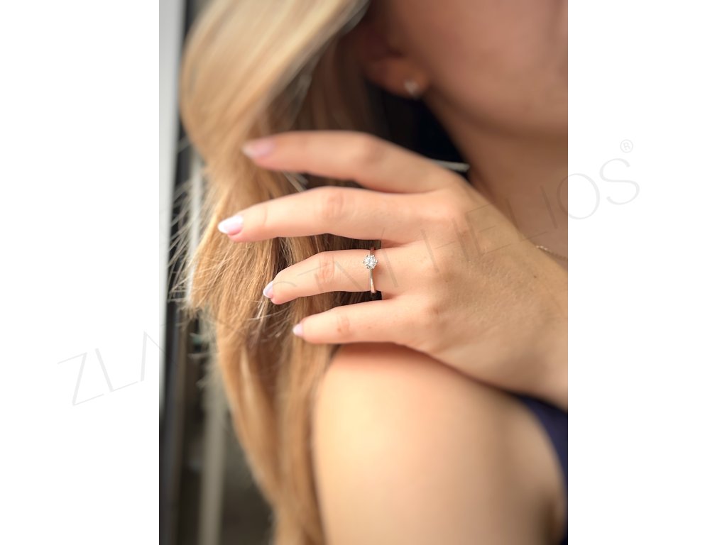 Mimoriadna práca našich zlatníkov. Zásnubný prsteň v žiarivom prevedení. Je možné vyrobiť aj s prírodným diamantom.