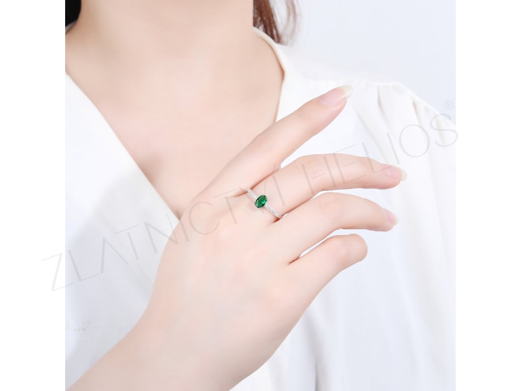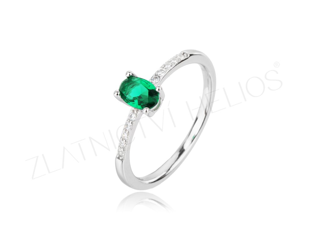 Strieborný prsteň so zirkónom vo farbe smaragdu.