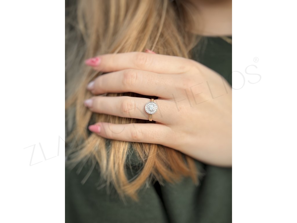 Zlatý prsteň s guľatou ozdobou a zirkónmi