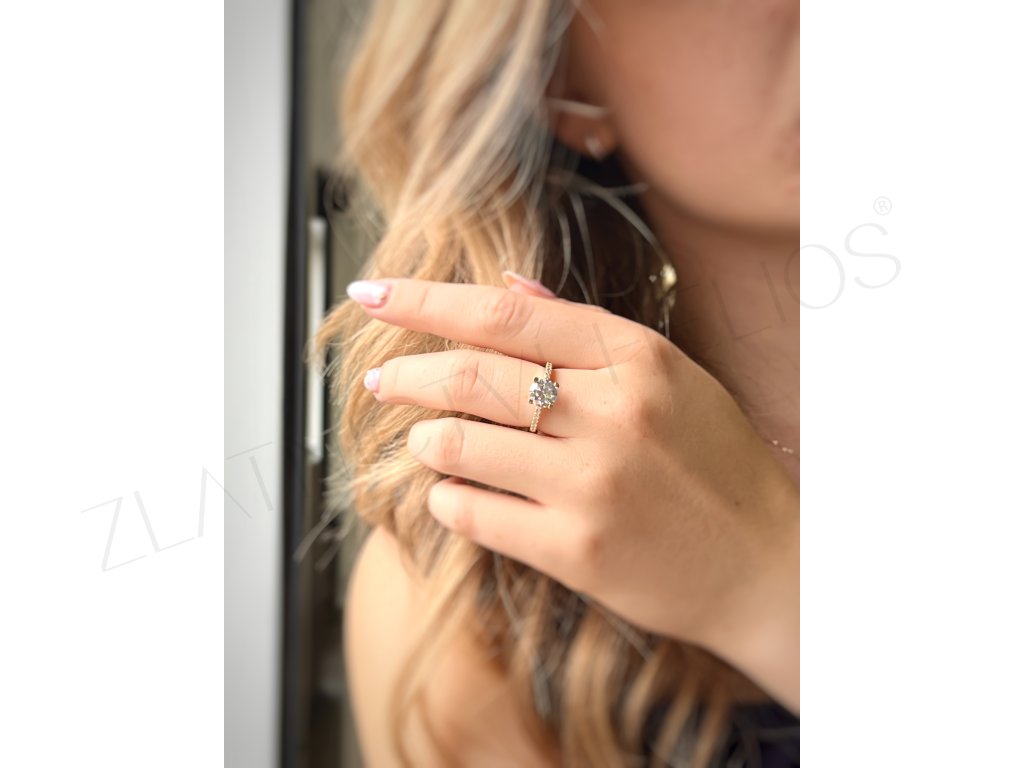 Zlatý prsteň s výrazným základným zirkónom, ktorý je možné nosiť ako prsteň klasický, aj zásnubný prsteň.